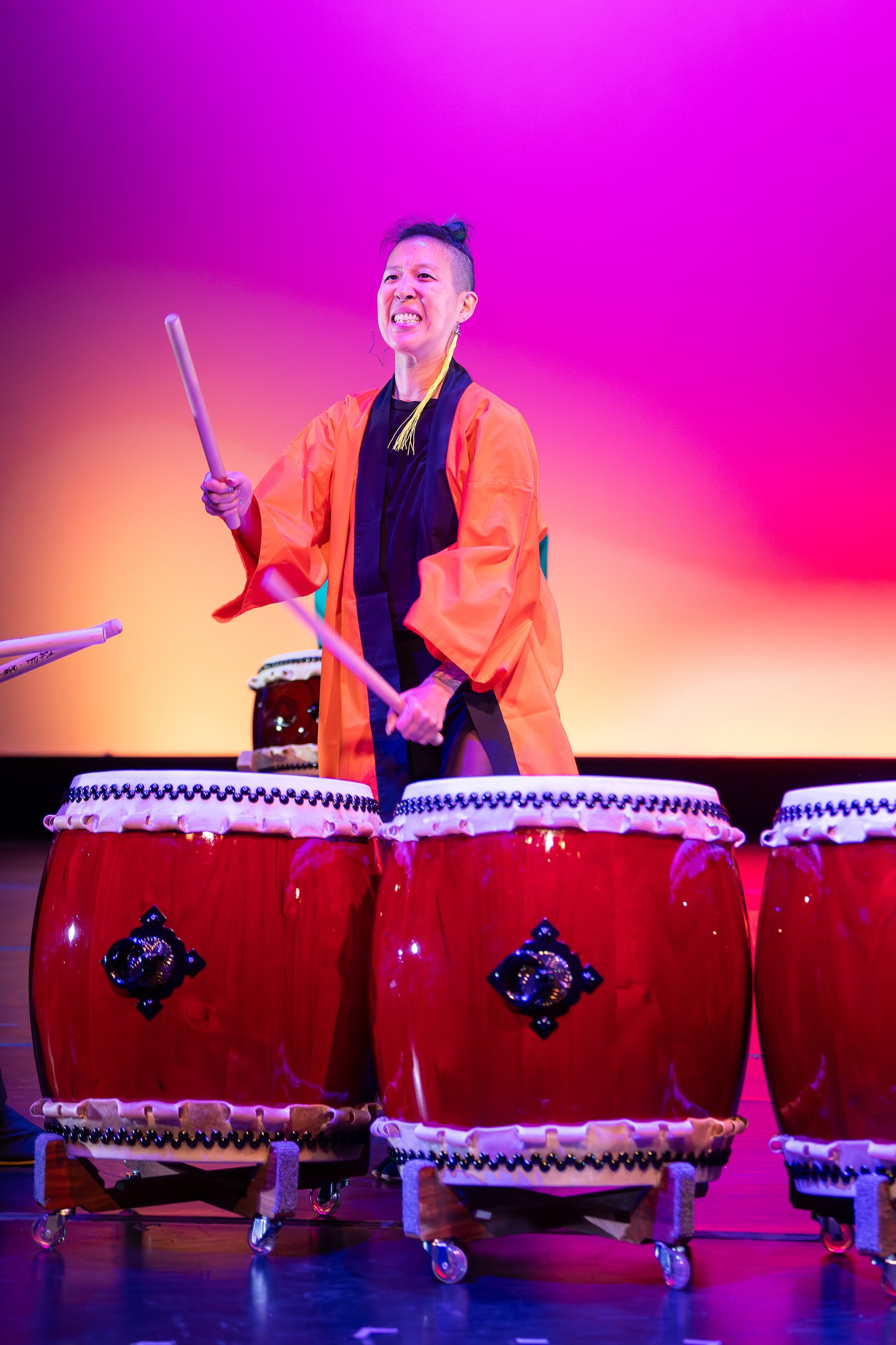 My work blends analog collage and taiko (Japanese drumming) to explore cultural identity, intergenerational memory, and liberation. With a background in nonprofit program management supporting BIPOC youth, I bring organizational leadership and community-centered practice to my creativity. Born and raised in the East Bay, California, I am a proud Chinese-Japanese American collagist and longtime taiko artist. I first connected with taiko in my 20s—through the rhythm of the taiko and the movements of resistance. I play and perform with Oakland-based groups, Queer Taiko and Club Hachijo, and teach beginner taiko at Berkeley Buddhist Temple. Teaching beginning taiko has deepened my commitment to cultural sharing and community power.